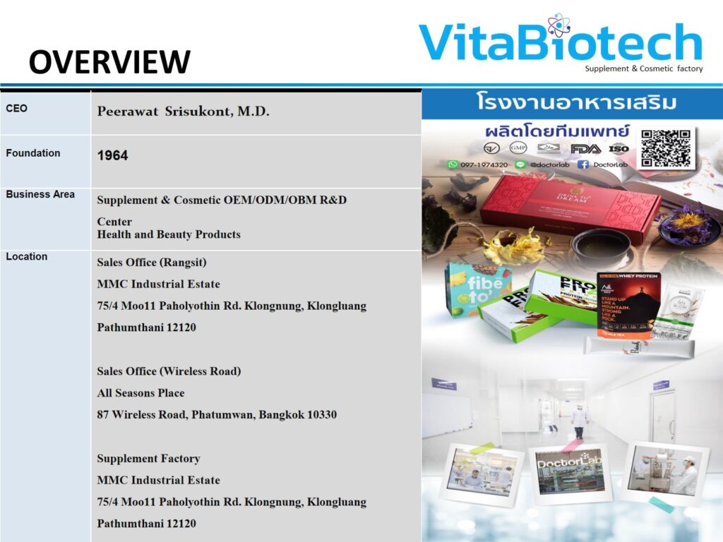 ประกอบธุรกิจประเภท การผลิต โดยให้บริการด้านแคปซูลและผงชงดื่ม